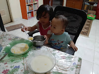 Kebetulan pagi-pagi seorang pedagang tua lewat di depan rumah dan menawarkan dagangannya. Kebetulan juga anak-anak dan suami suka dengan pisang ambon. Akhirnya saya pun membeli satu sisir pisang ambon sebagai menu cemilan tambahan anak-anak. Rayyan menikmati cemilan ini dengan sangat lahap. Alhamdulillah rasanya sangat manis, lembut dan lezat.